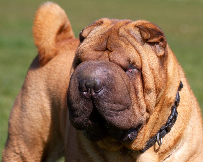Another common cause of red-eye in the dog is eyelid entropion. This abnormality causes the eyelid to roll inward, so the eyelashes and facial hairs are rubbing against the eye, causing irritation, discomfort, and, in the worst case, ulceration of the cornea. The most effective treatment for this condition is surgery.