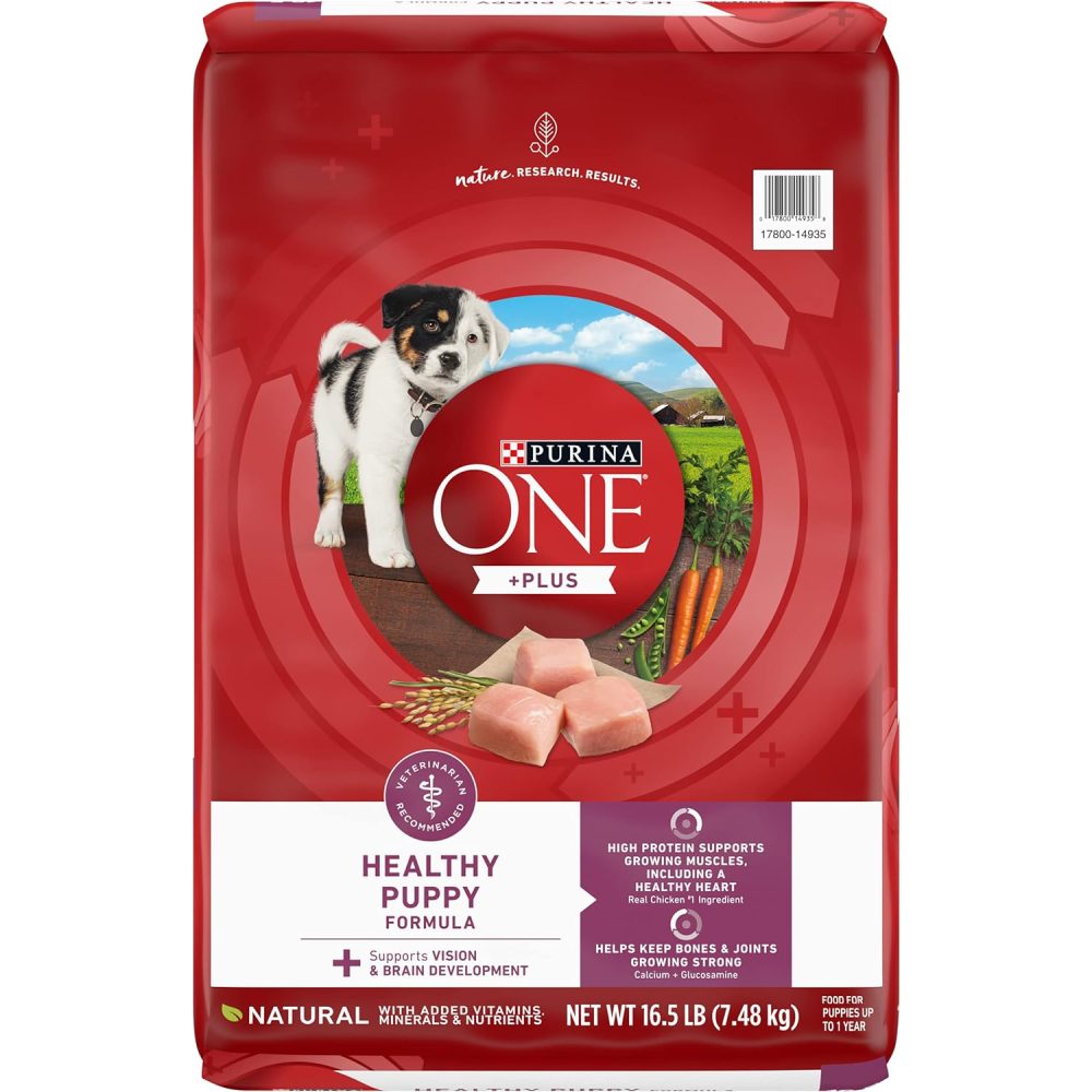 Puppies love to jump about and play, and Purina One Natural Puppy Formula is a great food to get your little one the protein that is needed to support growing muscles. Real chicken is the first ingredient that provides necessary protein, and DHA is also present for eye and brain development, as well as calcium for strong teeth.