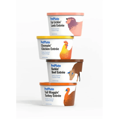 The PetPlate dog food delivery service has customizable subscription plans with four different recipes, which are all freshly cooked and free from by-products, artificial preservatives, and rendered meats. You can choose between recipes that contain chicken, beef, turkey, or lamb, all of which are 100% human-grade, and are packed with healthy vegetables like carrots, pumpkin, and sweet potatoes. The recipes contain an average protein content of 6%–10%, and all are high in moisture and come in convenient re-sealable containers.