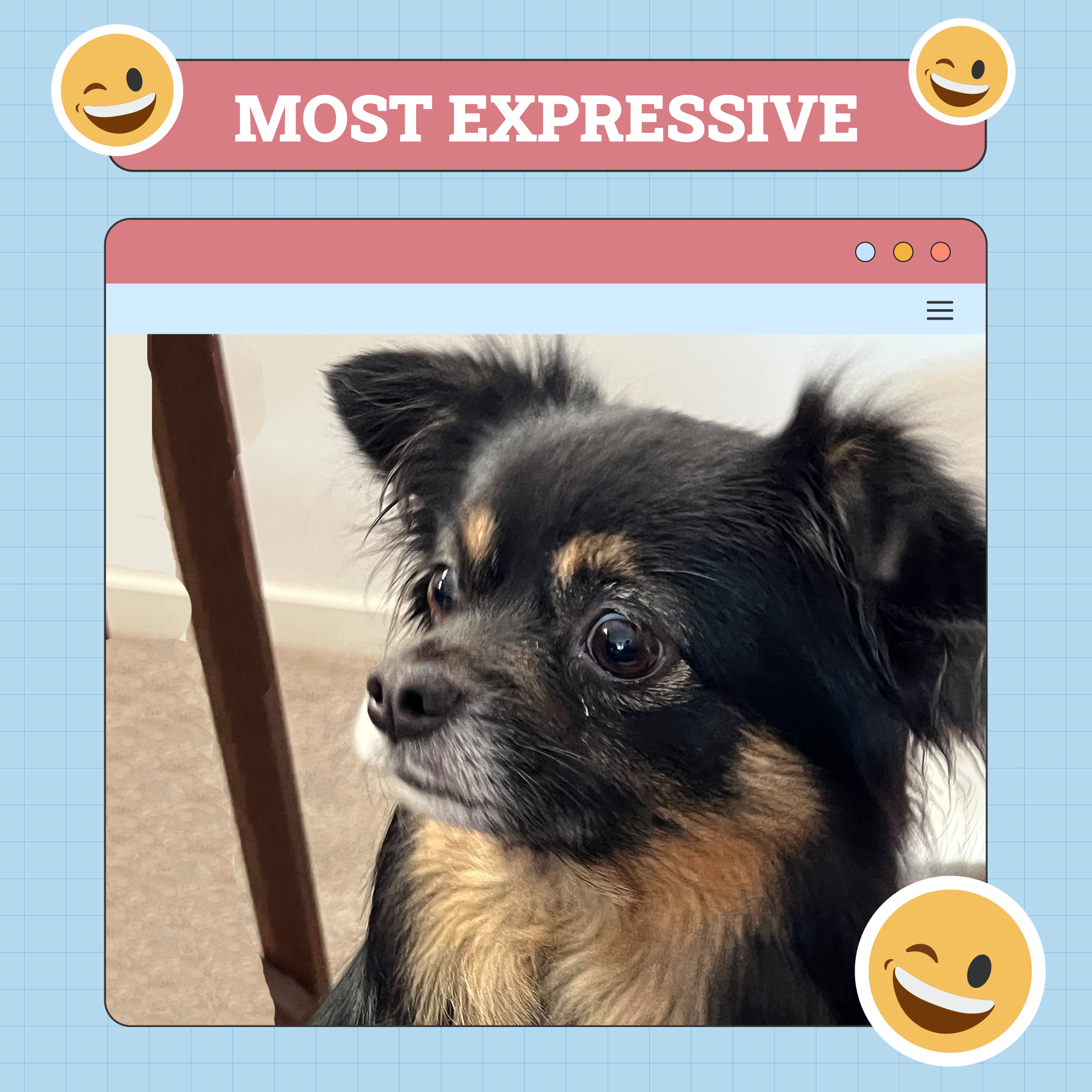 Fun Fact: | “I adopted Chewy from a shelter in July this year. He’s about 4 and the most loving dog I’ve ever owned. Lively, feisty but with great spirit, I have no idea why anyone could surrender him. I saved his life and he saved mine.” |