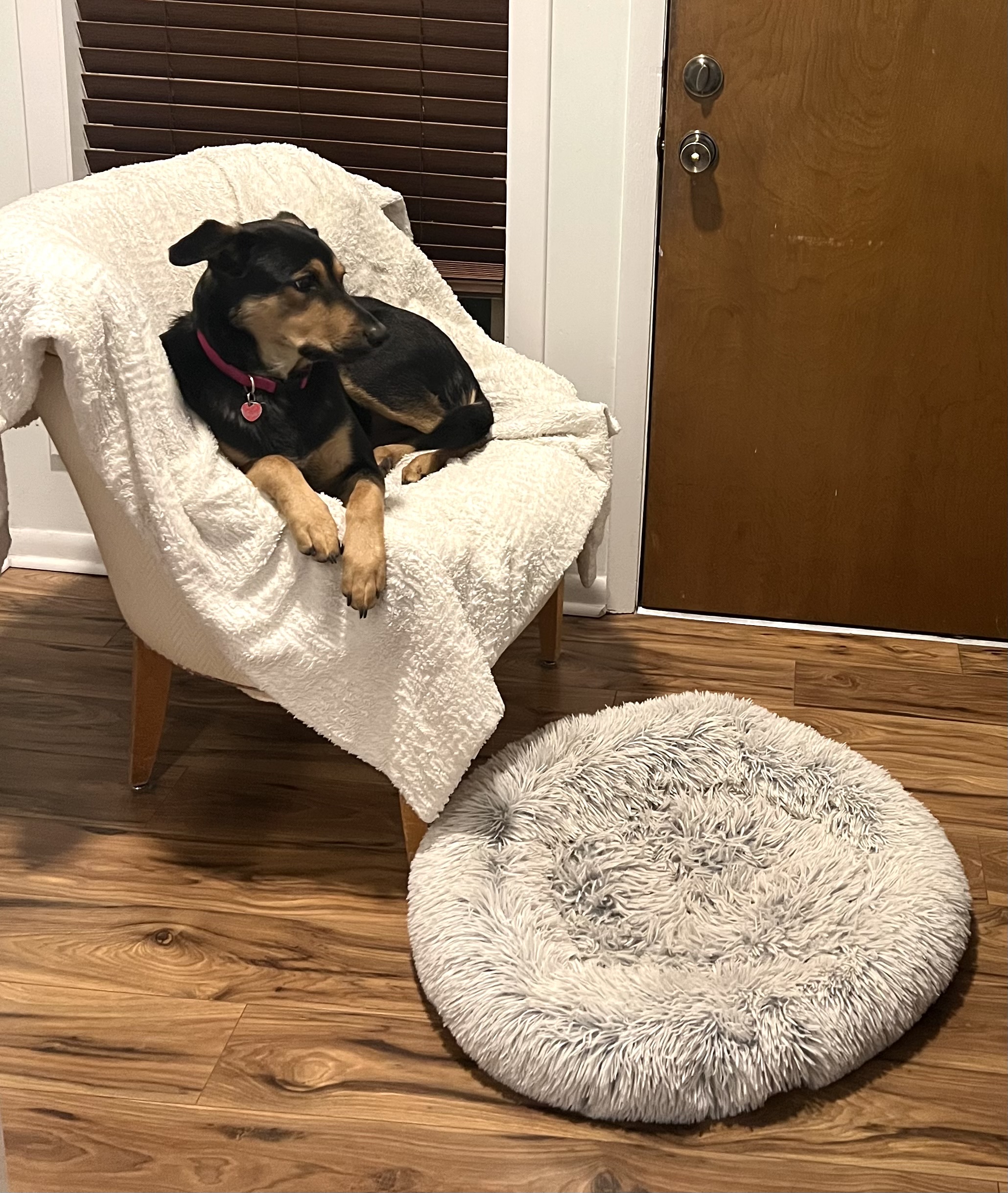 | Fun Fact: | “Colby loves relaxing on my chair rather than her bed!” |