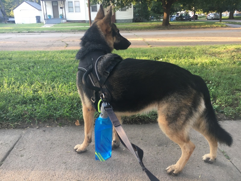 The EZ Lick water bottle is a great price for how much convenience you get out of it. It’s lightweight, portable, flexible, and requires no doggy bowl. That’s a big plus for active dog owners.